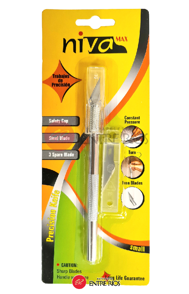 Lográ cortes precisos y profesionales en tus proyectos con la Cuchilla Bisturí Nivamax con repuesto, ideal para trabajos de gráfica, diseño y manualidades. Su diseño ergonómico y liviano permite un manejo cómodo y seguro, facilitando un control perfecto sobre cada trazo y detalle. Además, incluye un repuesto de cuchilla para que no te detengas en medio de tus tareas más creativas o exigentes.