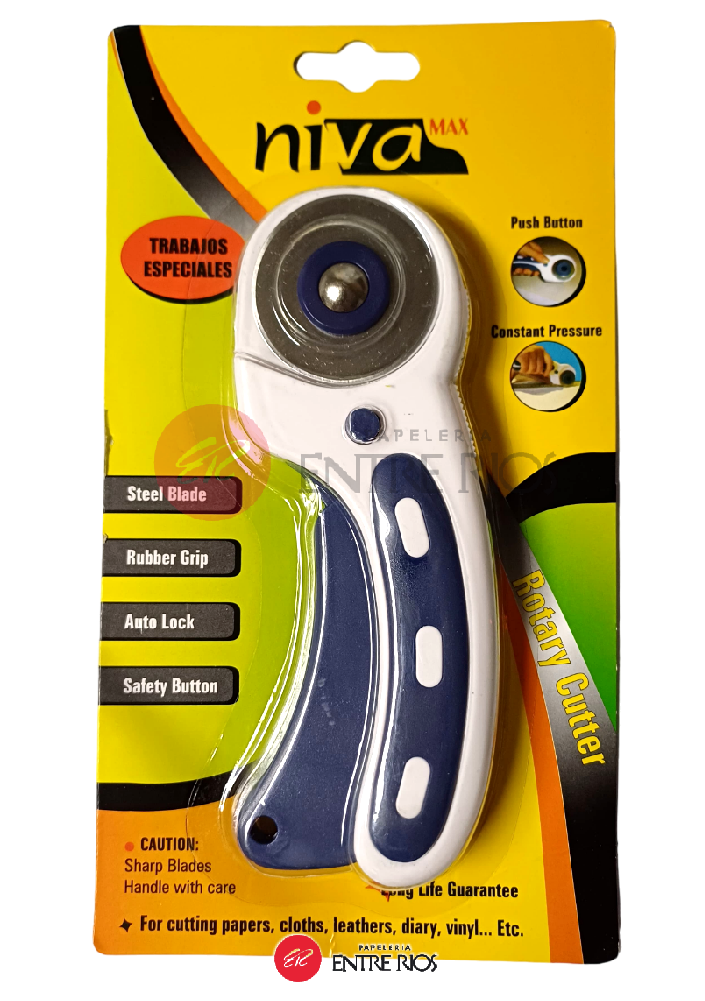 Este cortador rotativo manual es perfecto para cortar papel, tela, cuero, vinilo y otros materiales similares, lo que lo convierte en un aliado versátil para estudiantes, docentes, artistas y aficionados al DIY. Ya sea para proyectos escolares, tareas creativas o trabajos de oficina, la Cuchilla Circular Nivamax se adapta a todo tipo de necesidad. ¡Sumala a tus herramientas y llevá tus creaciones al siguiente nivel!