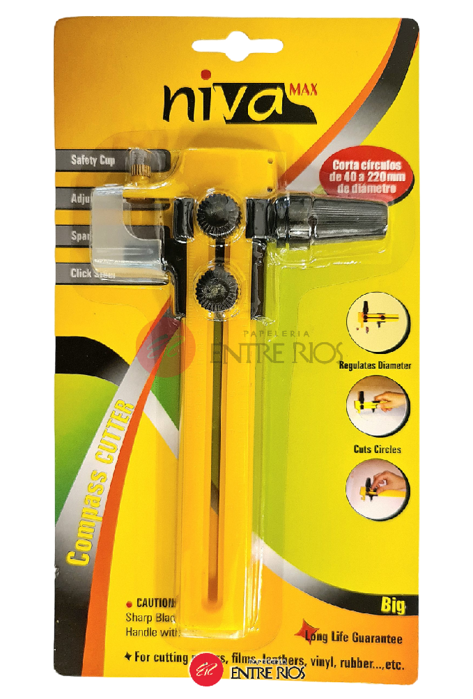 Descubrí la forma más precisa y práctica de cortar círculos perfectos con la Cuchilla Compás Nivamax Regulable Big. Ideal para quienes buscan prolijidad y precisión en sus trabajos escolares, de oficina o de manualidades, este cortador circular manual tipo compás se ajusta fácilmente para adaptarse a diferentes diámetros, permitiéndote lograr resultados limpios y profesionales en cada uso.