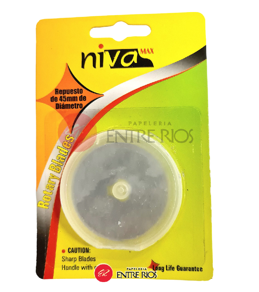Repuestos de cuchillas circulares Nivamax de 45 mm, ideales para cortar papel, tela o cartón con precisión y facilidad.