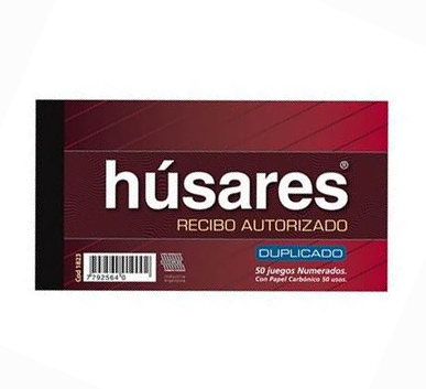 Talonario duplicado Húsares de 50 juegos autocopiantes, ideal para emitir y conservar recibos de manera práctica y ordenada.